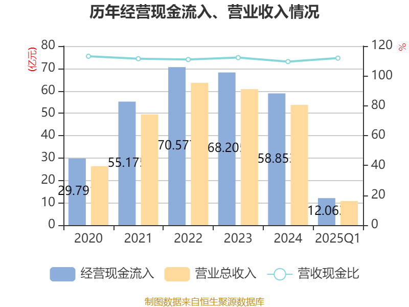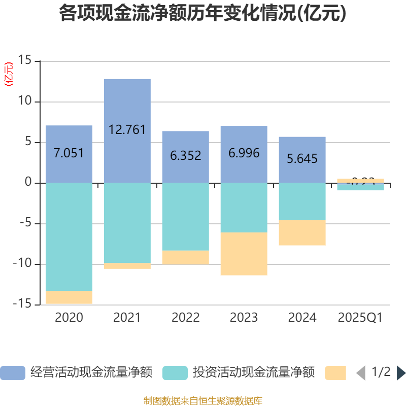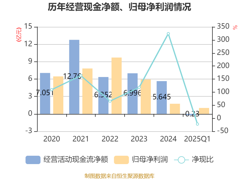 截至2025年一季度末,公司经营活动现金流净额为-2297.7万元,同比减少5782.83万元;筹资活动现金流净额4954.65万元,同比增加2.7亿元;投资活动现金流净额-7093.04万元,上年同期为-5494.49万元。