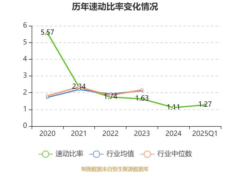 2025年第一季度,公司流动比率为2.37,速动比率为1.27。