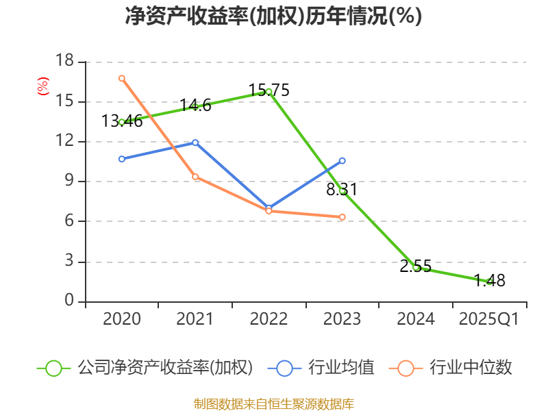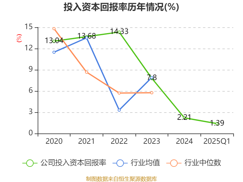 盈利能力方面, 2025年一季度公司加权平均净资产收益率为1.48%,同比下降1.99个百分点。公司2025年第一季度投入资本回报率为1.39%,较上年同期下降1.93个百分点。
