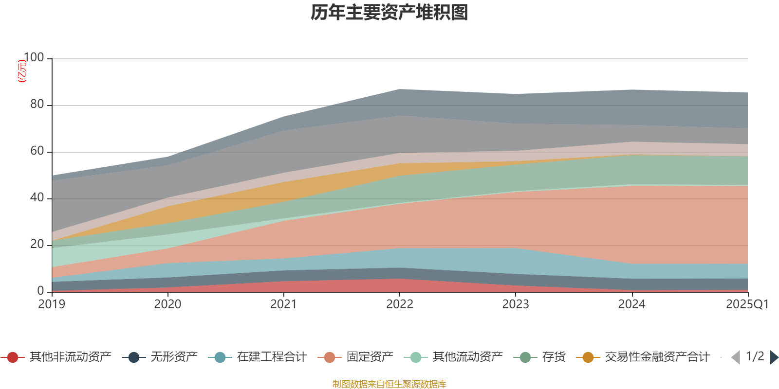 资产重大变化方面,截至2025年一季度末,公司固定资产较上年末减少0.05%,占公司总资产比重上升0.52个百分点;预付款项较上年末增加46.34%,占公司总资产比重上升0.46个百分点;交易性金融资产合计较上年末减少100%,占公司总资产比重下降0.35个百分点;货币资金较上年末减少5.32%,占公司总资产比重下降0.33个百分点。